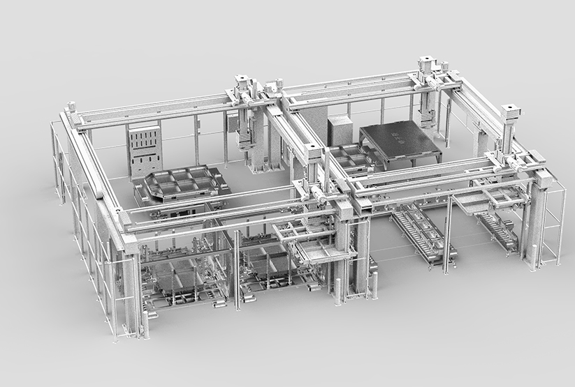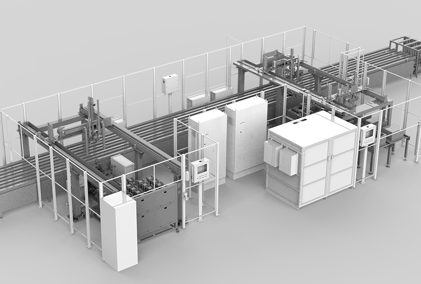 該柔性線旨在實現PACK柔性智能化裝配及測試,包括殼體自動上線、模組自動入箱、自動擰緊、氣密性測試、EOL測試、充放電測試、智能物流及產線MES等功能。