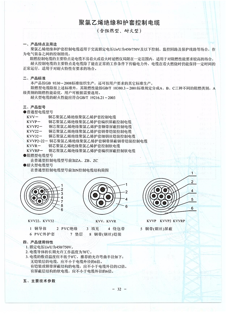 定義:聚氯乙烯絕緣聚氯乙烯護套耐火控制電纜